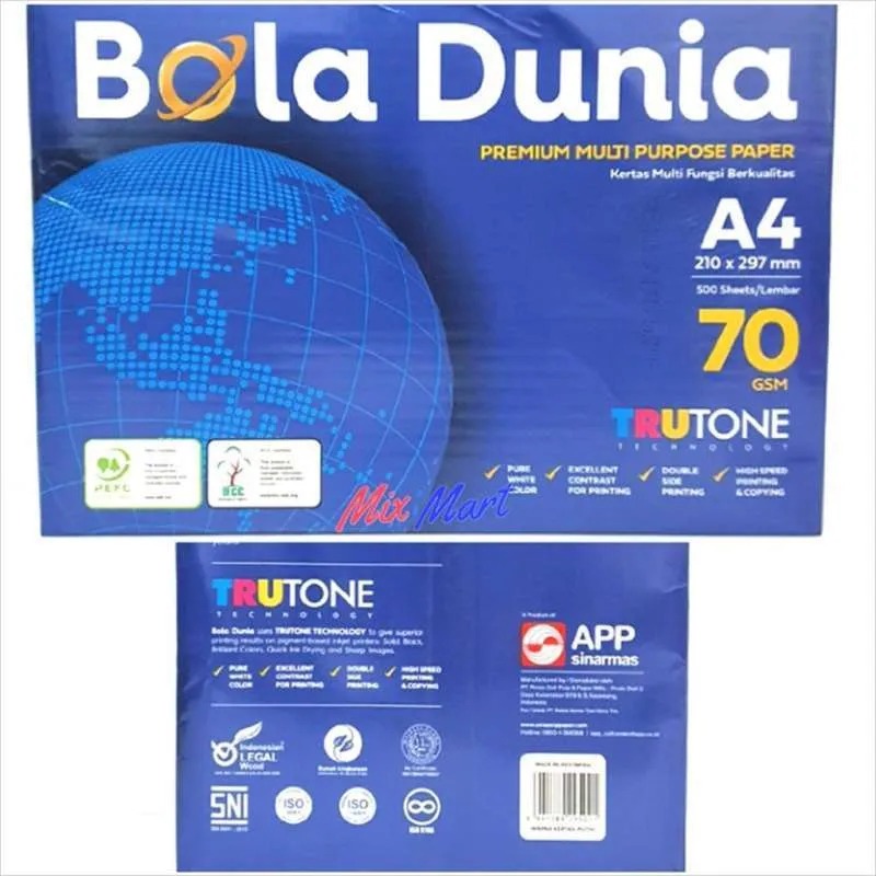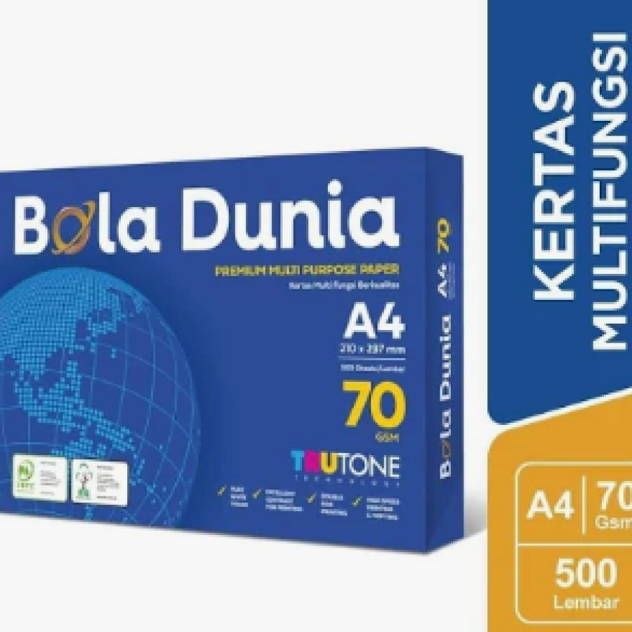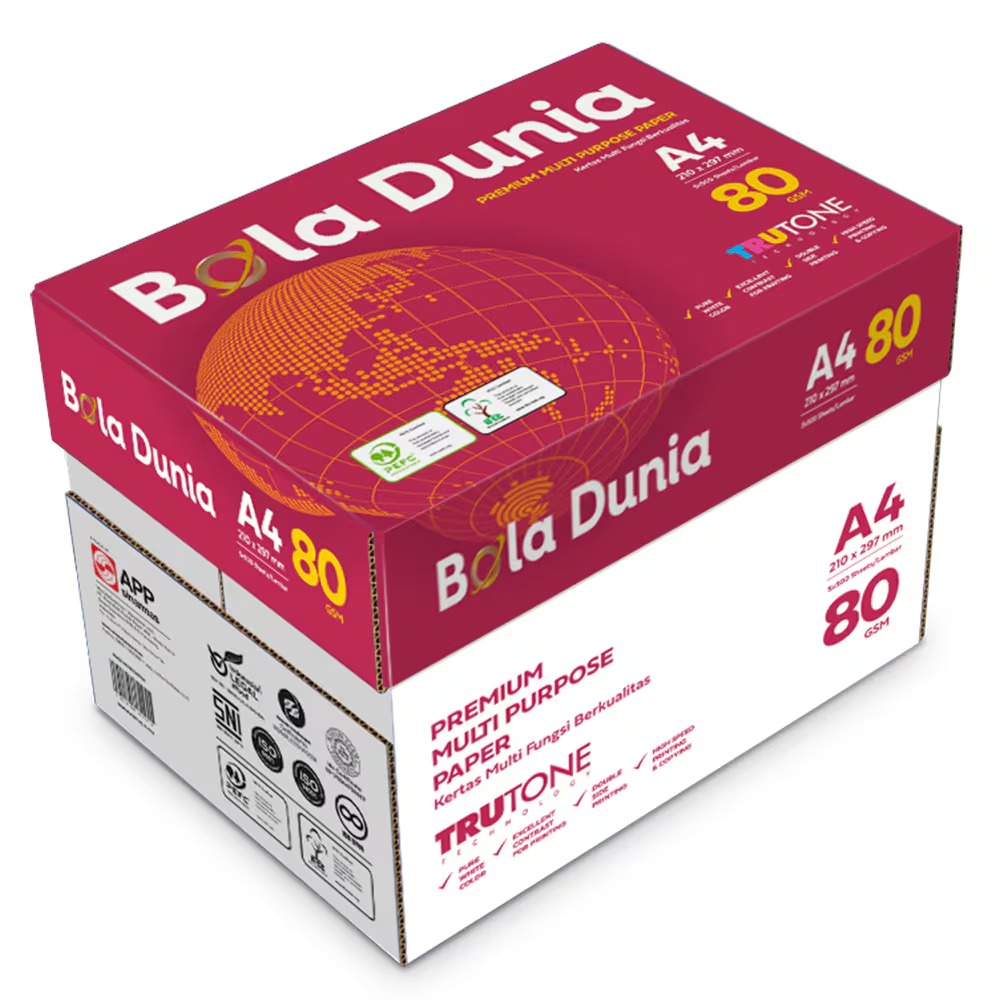 Bola Dunia menghadirkan permukaan kertas yang halus untuk menghasilkan cetakan yang tajam, jelas, dan kontras. Warna putih cerahnya membuat teks dan gambar terlihat profesional serta mudah dibaca.
