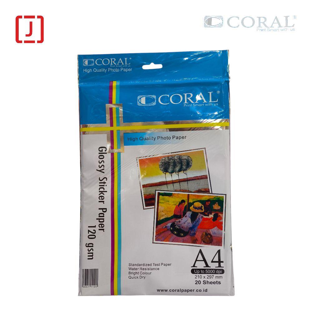 Coral Glossy Photo Sticker Paper 120 Gsm adalah kertas stiker foto inkjet dengan permukaan mengkilap (glossy). Produk ini dikemas dalam pak berisi 20 lembar.