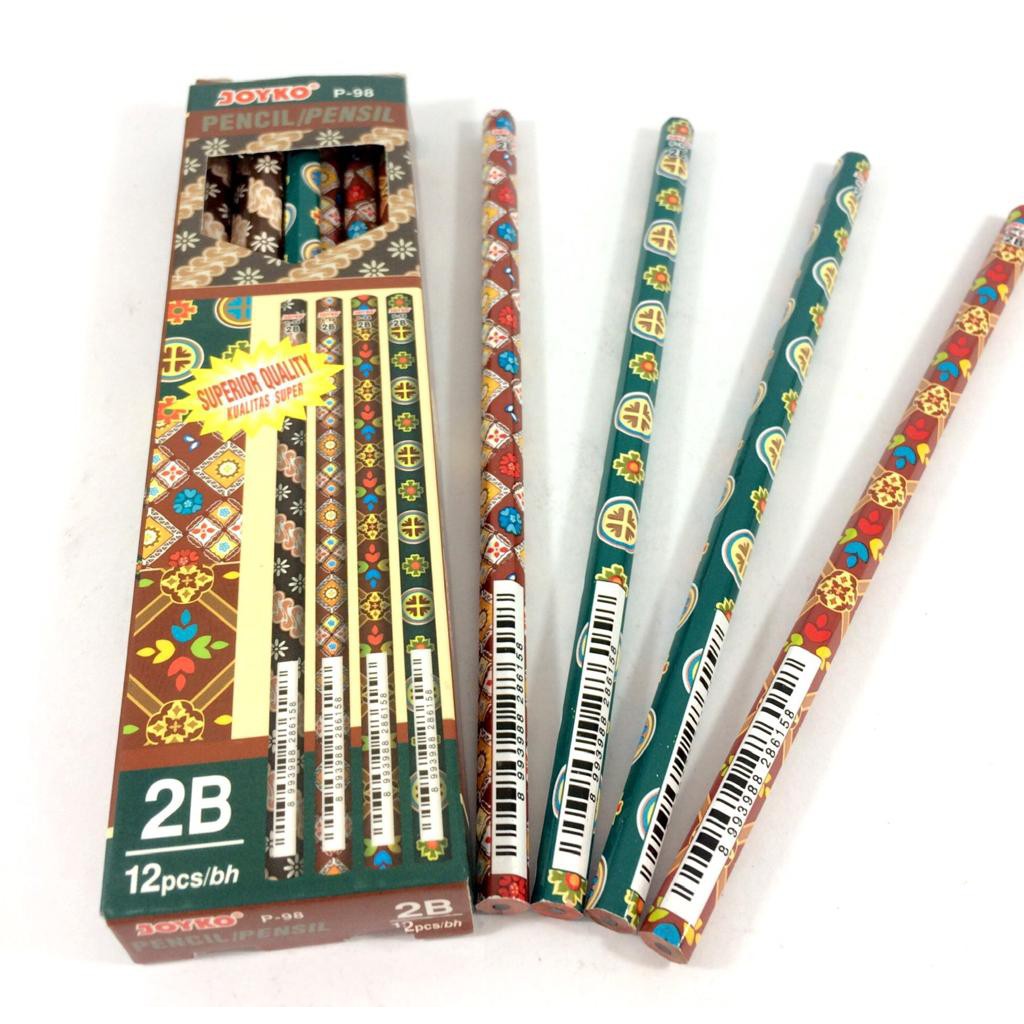 Pensil Joyko P-98 adalah pensil kayu dengan desain motif batik yang menarik, dirancang untuk berbagai kebutuhan menulis, menggambar, dan pemindaian komputer.
