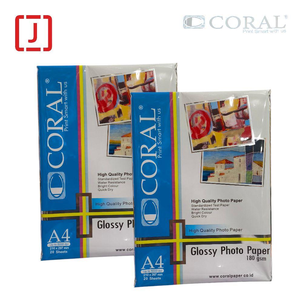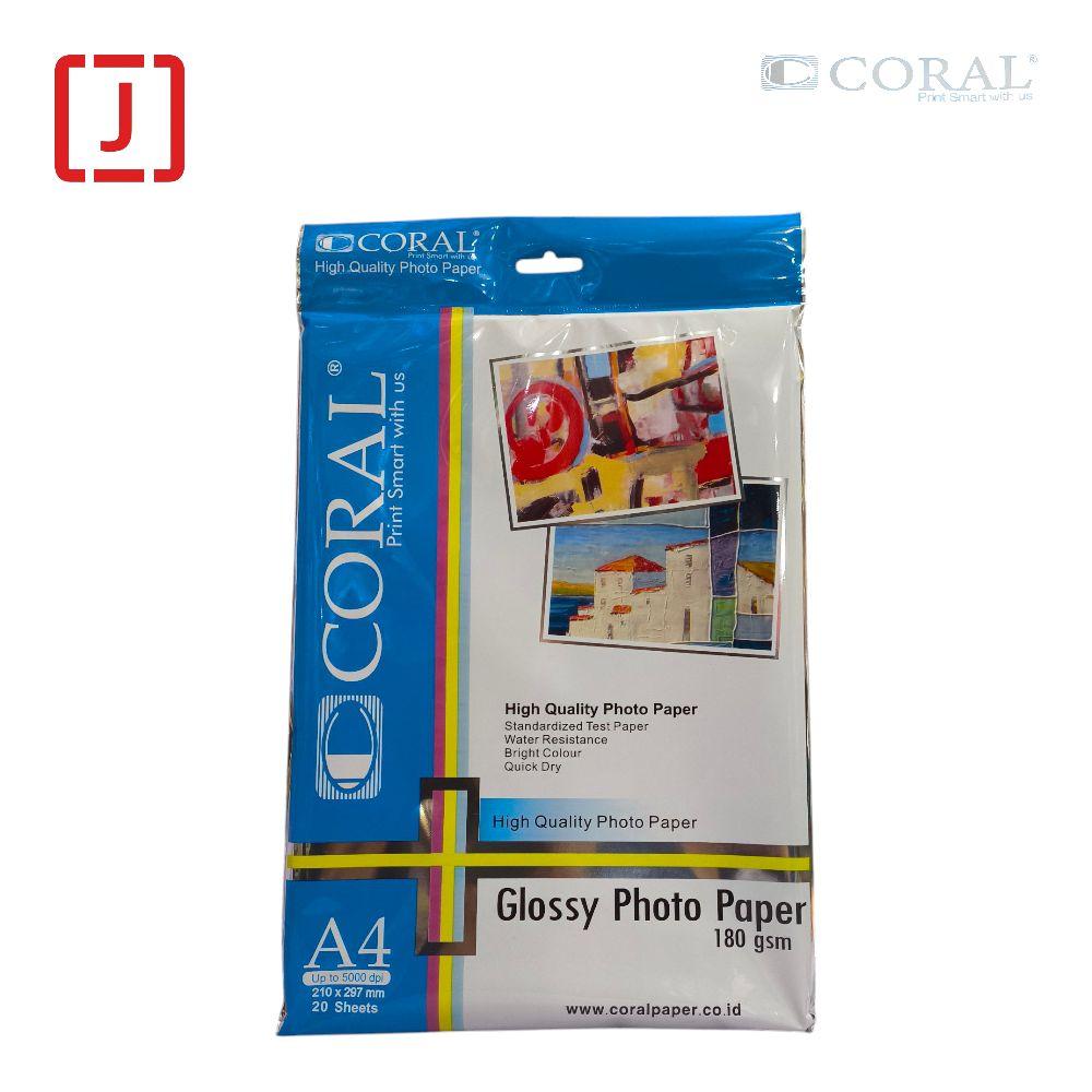 Kertas Foto Glossy Photo Paper A4 180 Gr Coral adalah jenis kertas foto yang dirancang untuk menghasilkan cetakan foto berkualitas tinggi dengan tampilan mengkilap (glossy).