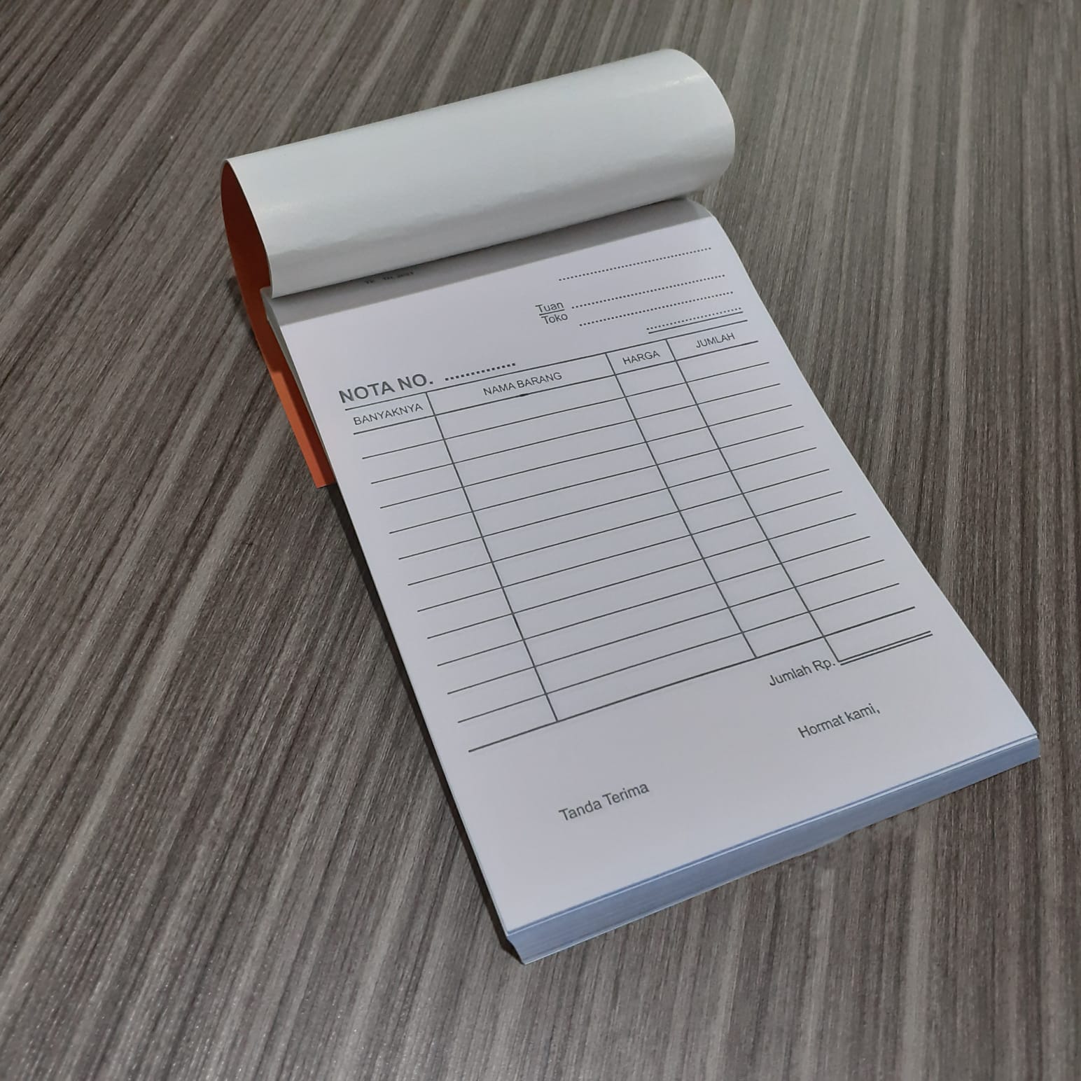 - Jenis: Buku nota kontan, dengan 3 lapis kertas (3 ply) yang menghasilkan salinan.